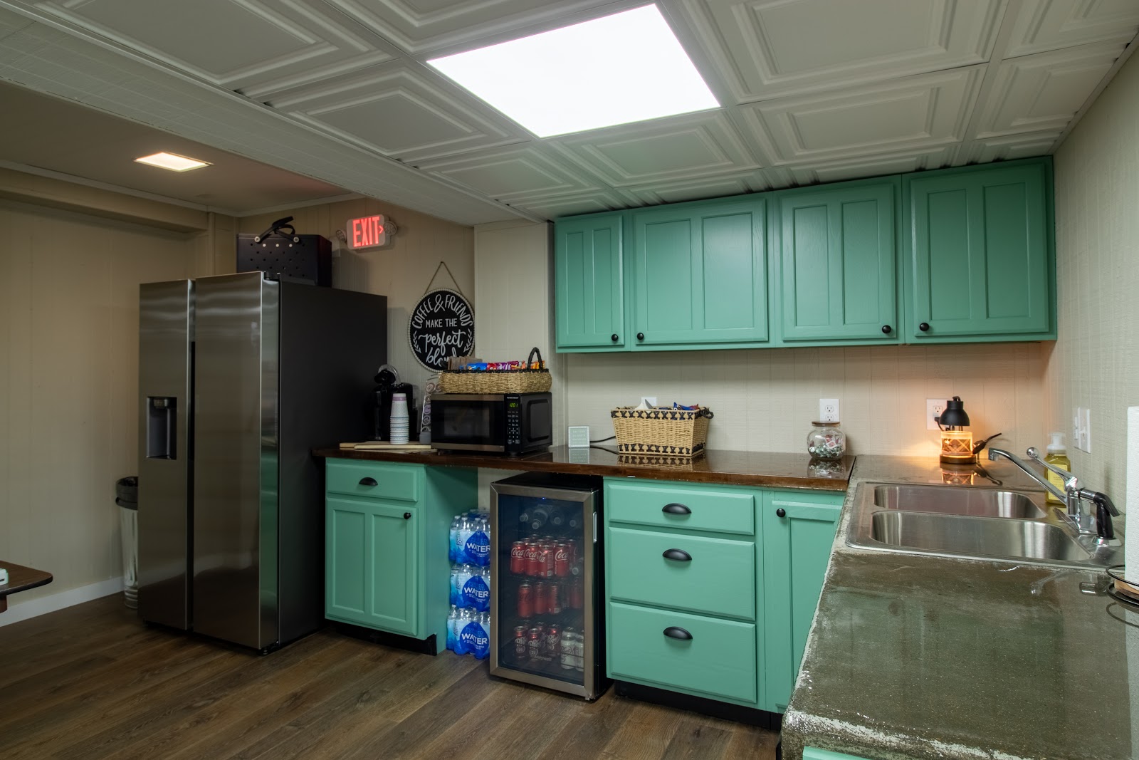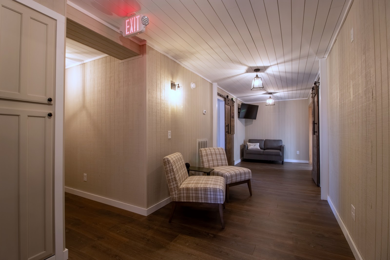 Over 1,000 square feet of dedicated event space available for conferences, workshops, and group activities. The facility includes a kitchenette, upstairs commons area, and dining room.